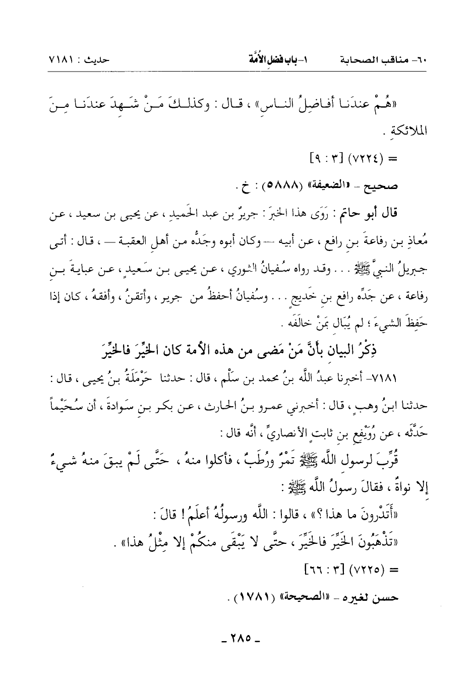 ذِكْرُ الْبَيَانِ بِأَنَّ مَنْ مَضَى مِنْ هَذِهِ الْأُمَّةِ كَانَ الخيِّر فالخيِّر