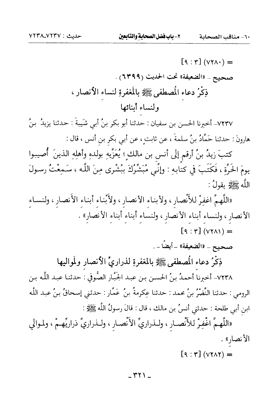 (اللَّهُمَّ اغْفِرْ لِلْأَنْصَارِ وَلِأَبْنَاءِ الْأَنْصَارِ وَلِأَبْنَاءِ أَبْنَاءِ الْأَنْصَارِ وَلِنَسَاءِ الْأَنْصَارِ وَلِنَسَاءِ أَبْنَاءِ الْأَنْصَارِ ولنساء أبناء أبناء الأنصار)