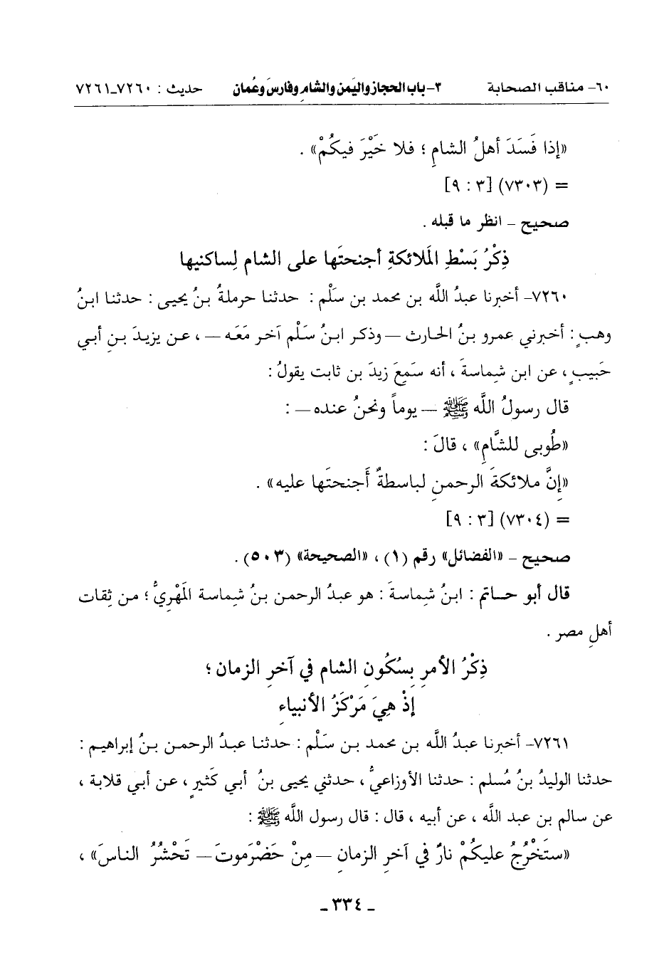 ذِكْرُ الْأَمْرِ بِسُكُونِ الشَّامِ فِي آخِرِ الزَّمَانِ إِذْ هِيَ مَرْكَزُ الْأَنْبِيَاءِ