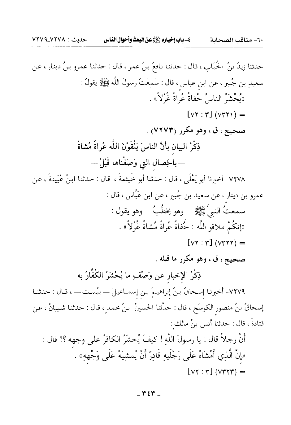 7279 - أَخْبَرَنَا إِسْحَاقُ بْنُ إِبْرَاهِيمَ بْنِ إِسْمَاعِيلَ بِبُسْتَ قَالَ: حَدَّثَنَا إِسْحَاقُ بْنُ مَنْصُورٍ الْكَوْسَجُ قَالَ: حَدَّثَنَا الْحُسَيْنُ بْنُ مُحَمَّدٍ قَالَ: حَدَّثَنَا شَيْبَانُ عَنْ قَتَادَةَ قَالَ: حَدَّثَنَا أَنَسِ بْنِ مَالِكٍ: