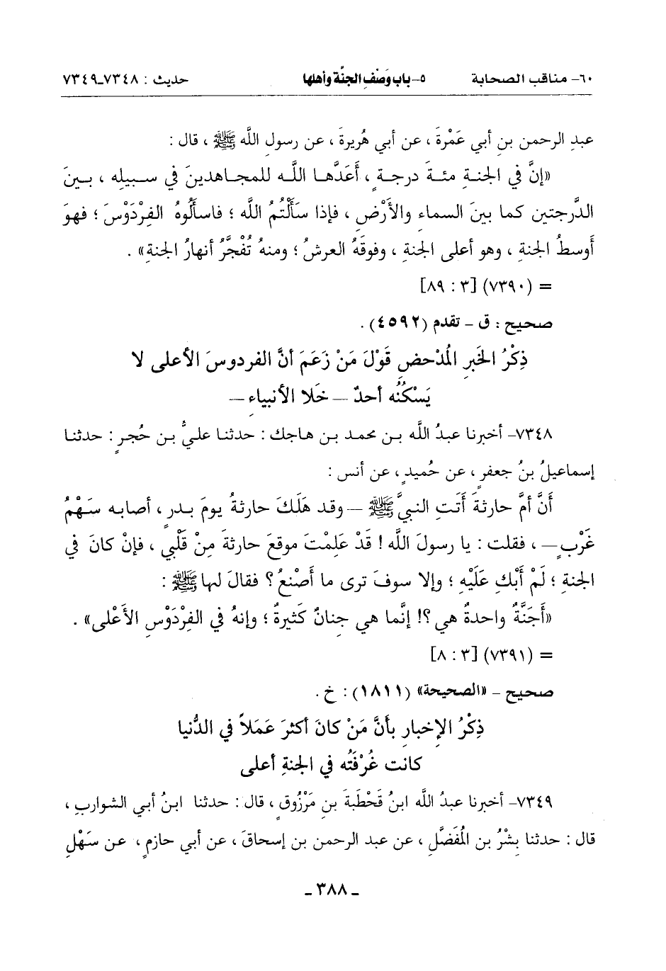 (أَجَنَّةٌ وَاحِدَةٌ هِيَ؟! إِنَّمَا هِيَ جنان كثيرة وإنه في الفردوس الأعلى)