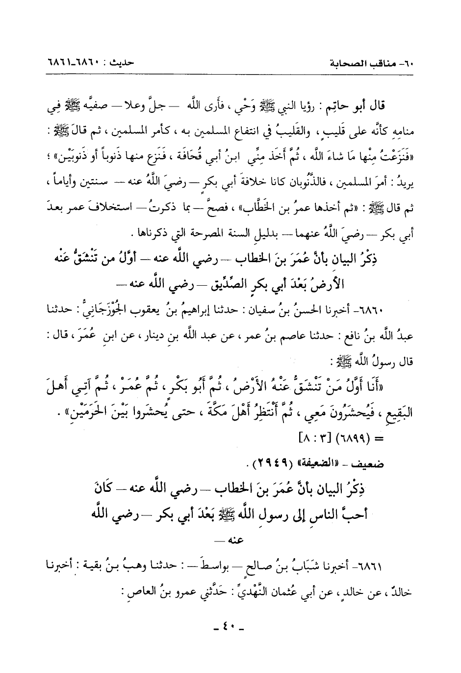 6860 - أَخْبَرَنَا الْحَسَنُ بْنُ سُفْيَانَ حَدَّثَنَا إِبْرَاهِيمُ بْنُ يَعْقُوبَ الْجَوْزَجَانِيُّ حَدَّثَنَا عَبْدُ اللَّهِ بْنُ نَافِعٍ حَدَّثَنَا عَاصِمِ بْنِ عُمَرَ عَنْ عَبْدِ اللَّهِ بْنِ دِينَارٍ: عَنِ ابْنِ عُمَرَ قَالَ: قَالَ رَسُولُ اللَّهِ صَلَّى اللَّهُ عَلَيْهِ وَسَلَّمَ: