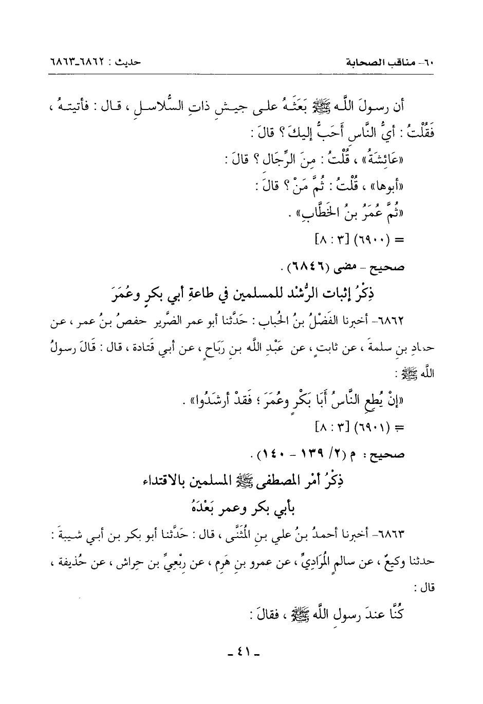 ذِكْرُ أَمْرِ الْمُصْطَفَى صَلَّى اللَّهُ عَلَيْهِ وَسَلَّمَ الْمُسْلِمِينَ بِالِاقْتِدَاءِ بِأَبِي بَكْرٍ وَعُمَرَ بَعْدَهُ