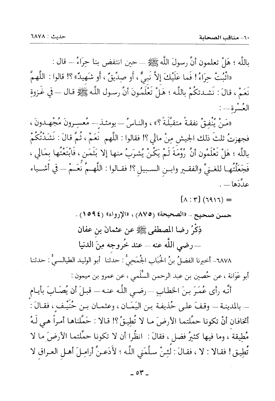 ذِكْرُ رِضَا الْمُصْطَفَى صَلَّى اللَّهُ عَلَيْهِ وَسَلَّمَ عَنْ عُثْمَانَ بْنِ عَفَّانَ رَضِيَ اللَّهُ عَنْهُ عِنْدَ خُرُوجِهِ مِنَ الدُّنْيَا