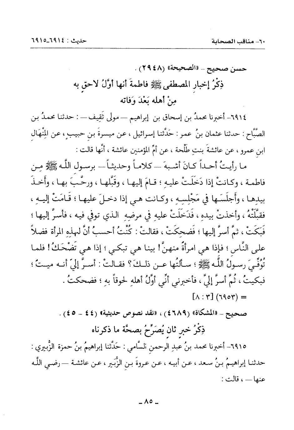 Qصحيح - ((المشكاة)) (4689) , ((نقد نصوص حديثية)) (44 - 45).
