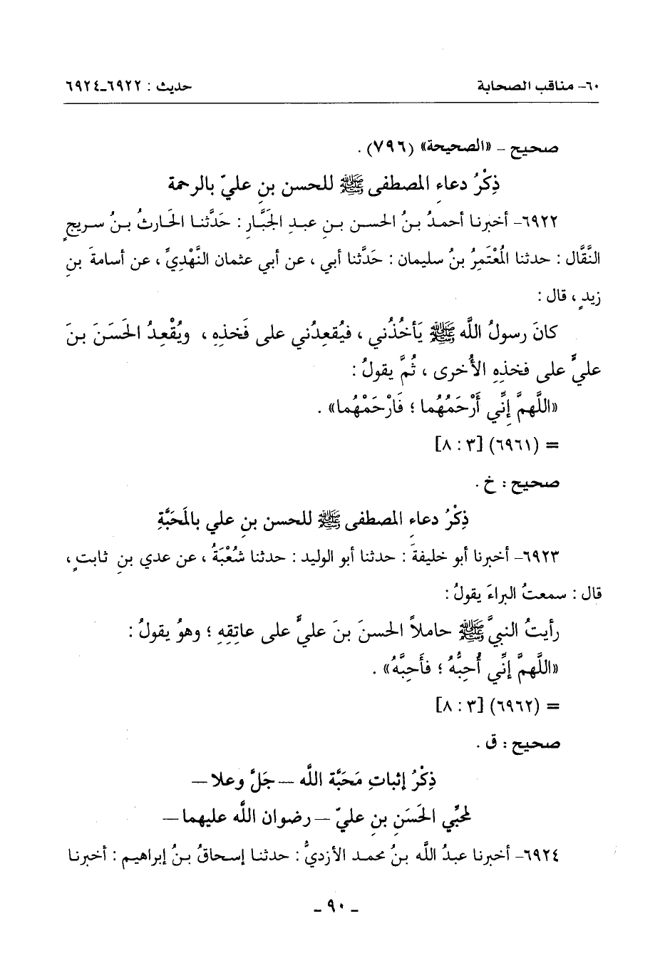 ذِكْرُ إِثْبَاتِ مَحَبَّةِ اللَّهِ جَلَّ وَعَلَا لمحبِّي الْحَسَنِ بْنِ عَلِيٍّ رِضْوَانُ اللَّهِ عَلَيْهِمَا