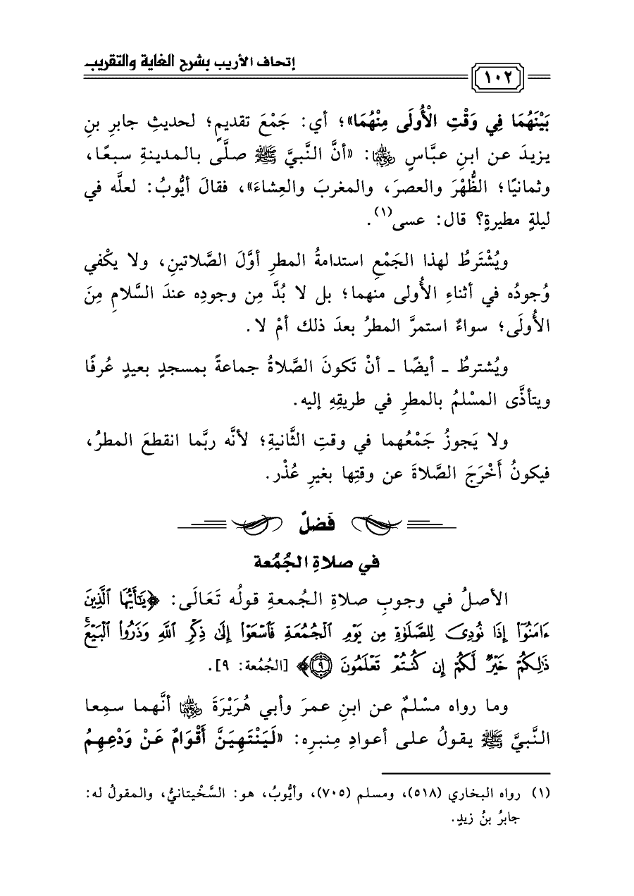 (¬١) رواه البخاري (٥١٨)، ومسلم (٧٠٥)، وأيُّوبُ، هو: السَّخْيتانيُّ، والمقولُ له: جابرُ بنُ زيدٍ.