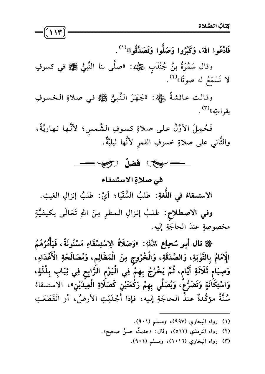 وقال سَمُرَةُ بنُ جُنْدَبٍ رضي الله عنه: «صلَّى بنا النَّبيُّ صلى الله عليه وسلم في كسوفٍ لا نَسْمَعُ له صوتًا» (¬٢).