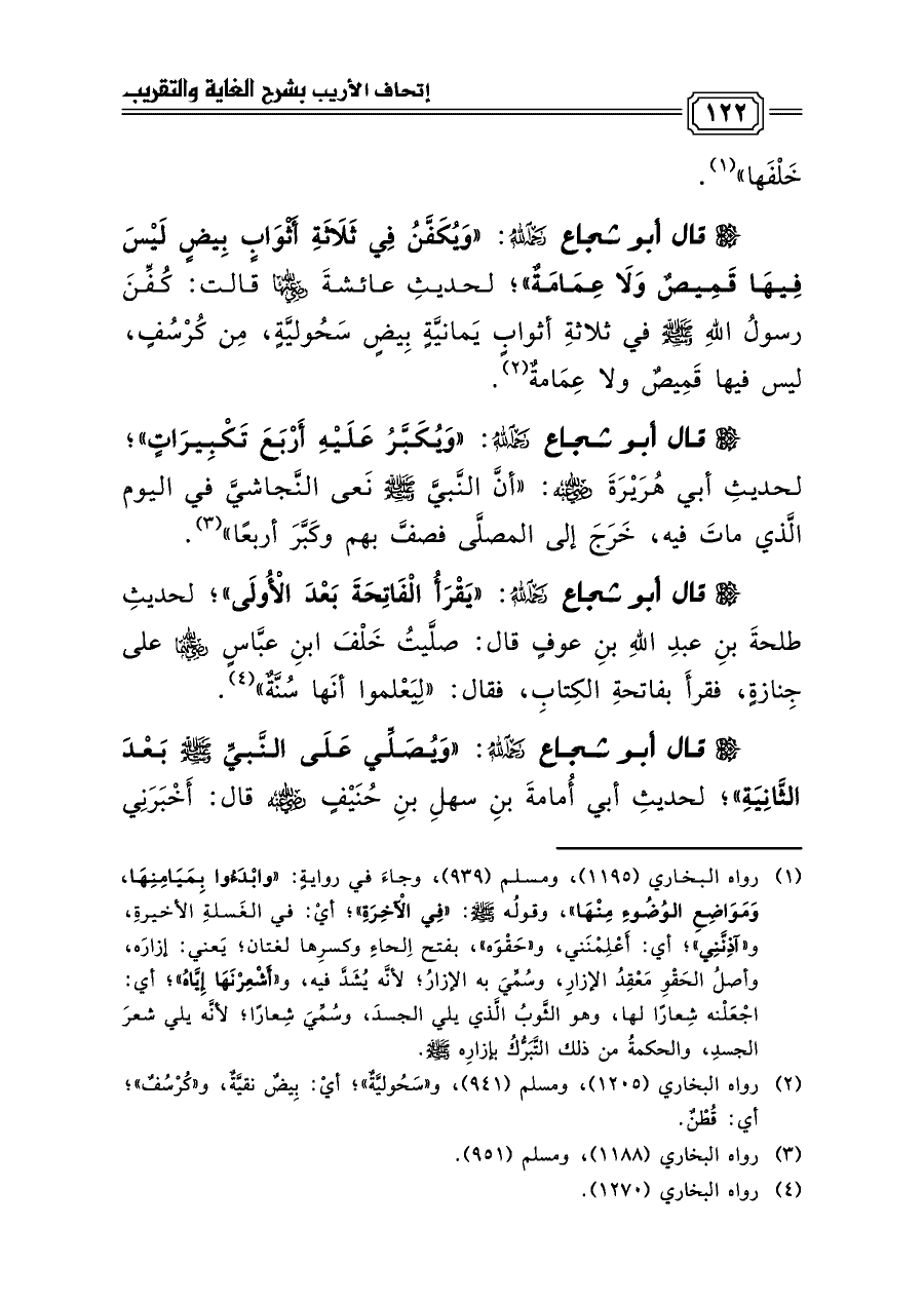 (¬٢) رواه البخاري (١٢٠٥)، ومسلم (٩٤١)، و «سَحُوليَّةٌ»، أيْ: بِيضٌ نقيَّةٌ، و «كُرْسُفٌ»؛ أي: قُطْنٌ.