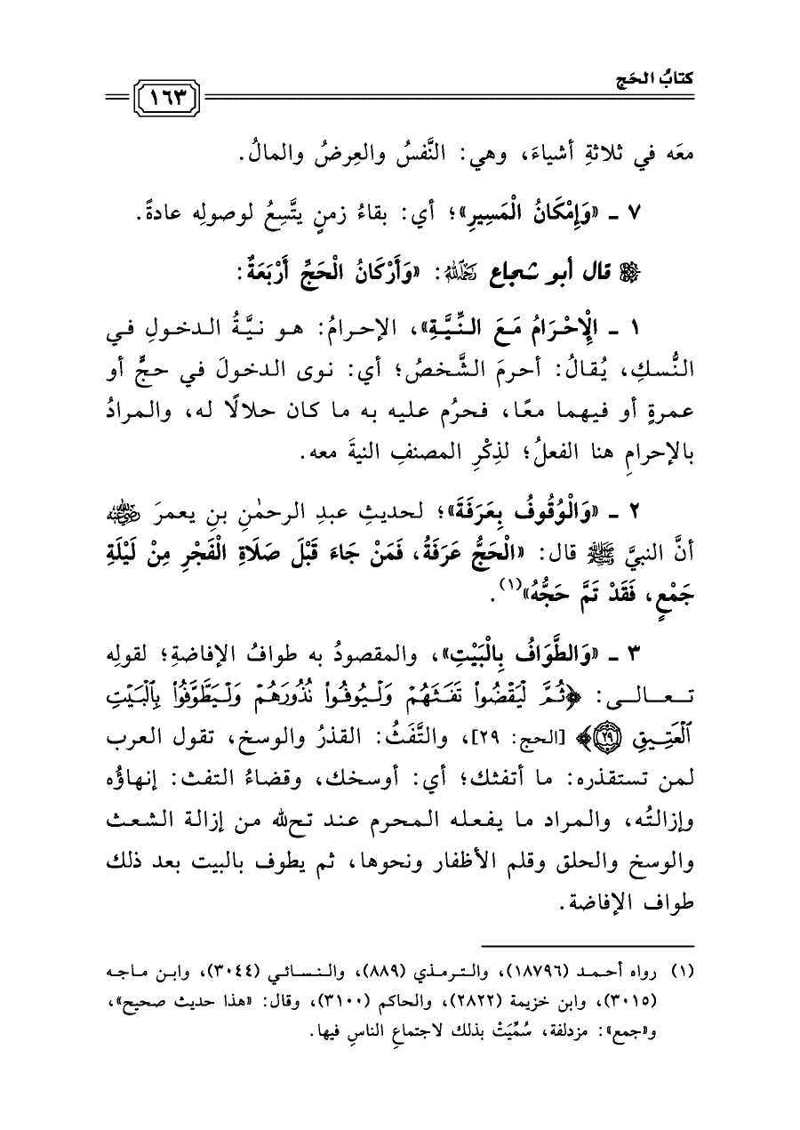 قال أبو شجاع رحمه الله: «وَأَرْكَانُ الْحَجِّ أَرْبَعَةٌ: