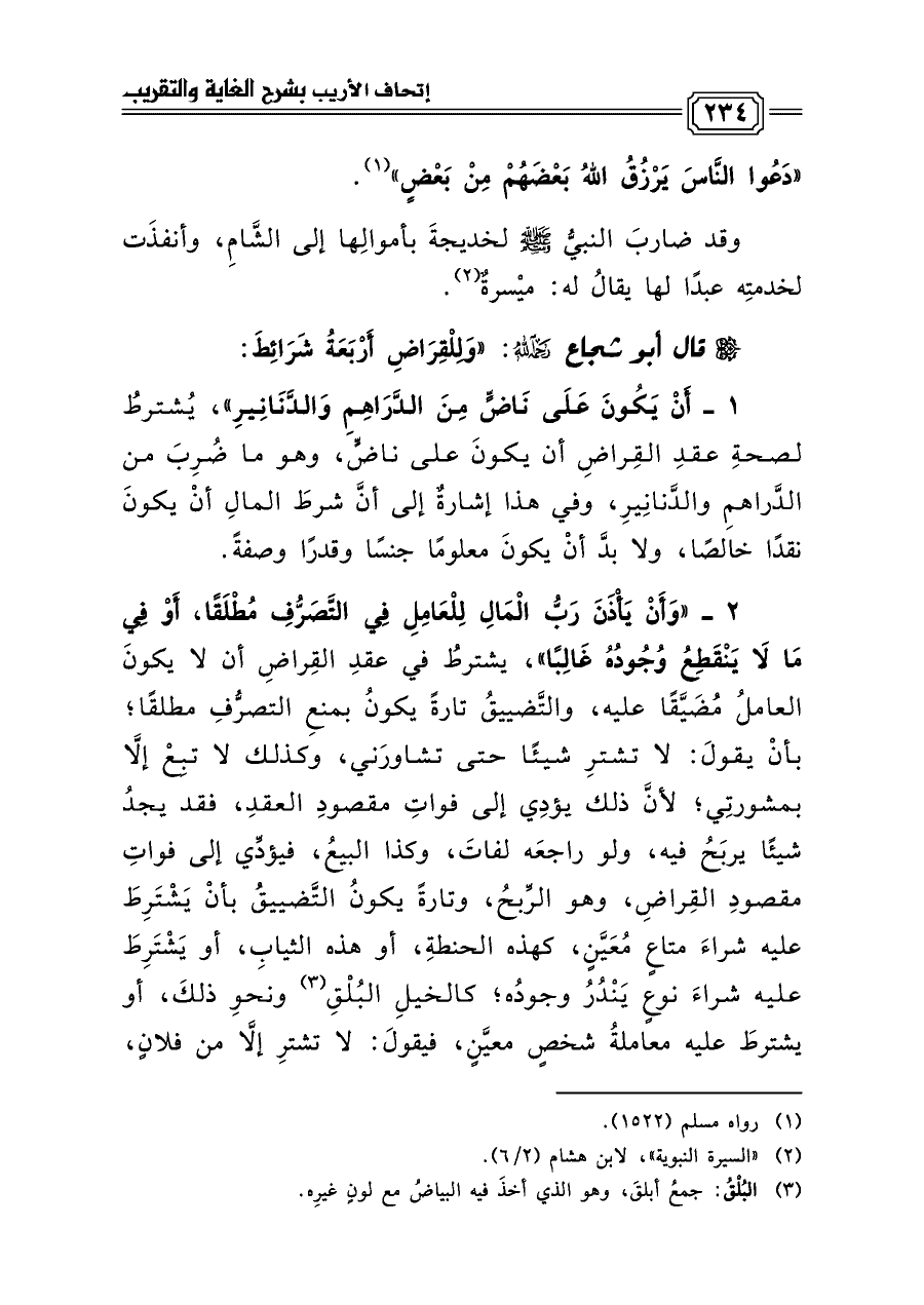 قال أبو شجاع رحمه الله: «وَلِلْقِرَاضِ أَرْبَعَةُ شَرَائِطَ: