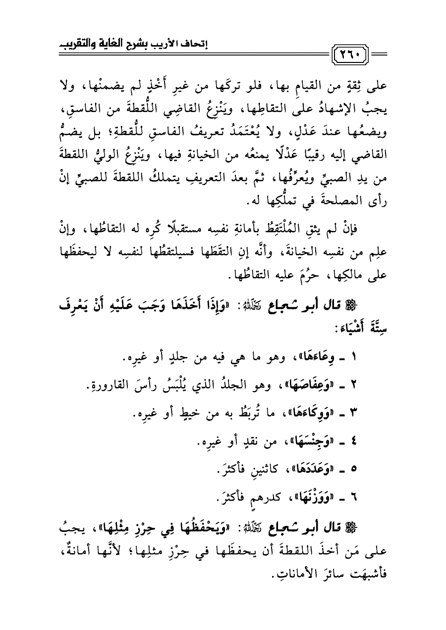قال أبو شجاع رحمه الله: «وَإِذَا أَخَذَهَا وَجَبَ عَلَيْهِ أَنْ يَعْرِفَ سِتَّةَ أَشْيَاءَ: