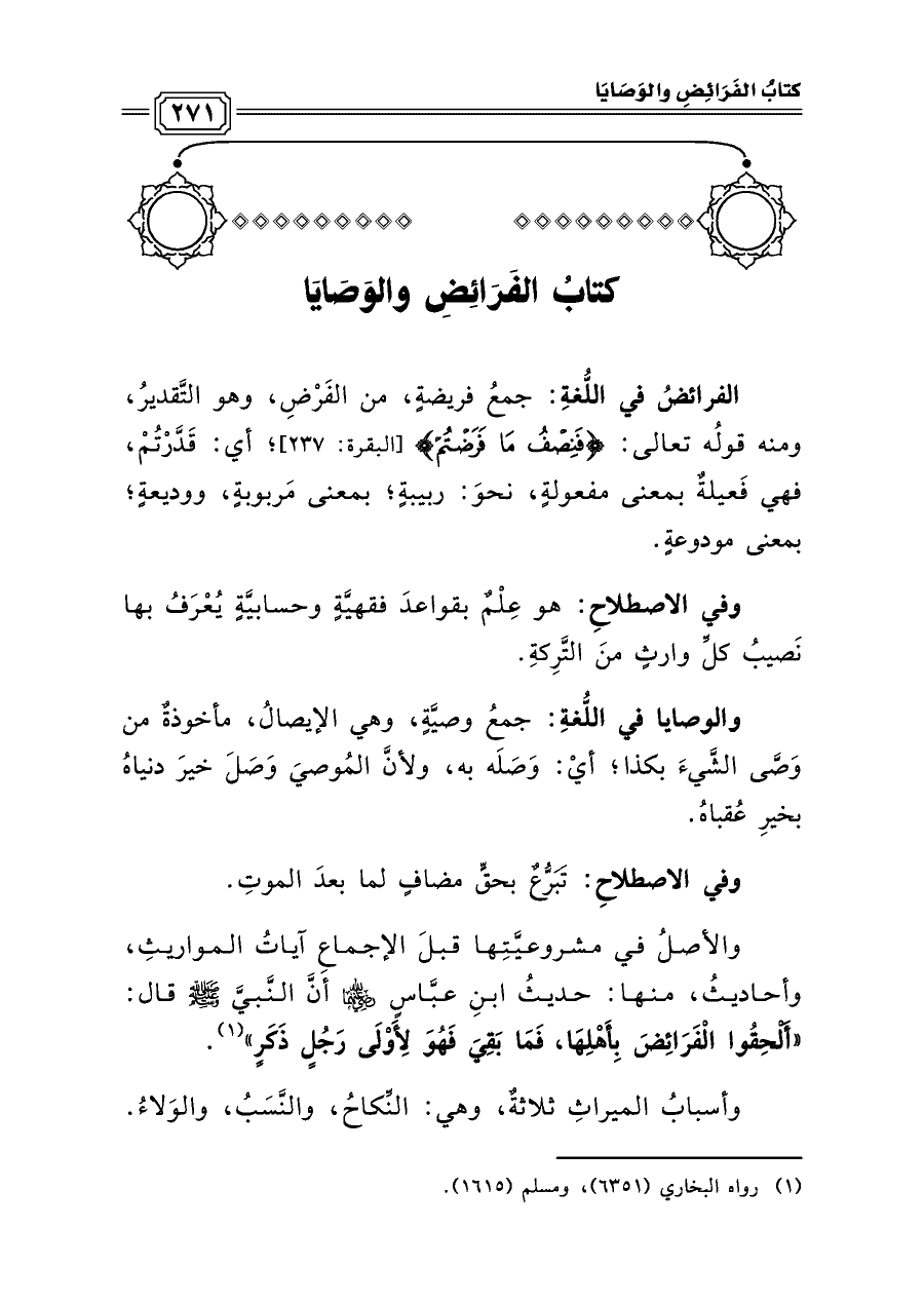 كتابُ الفَرَائِضِ والوَصَايَا