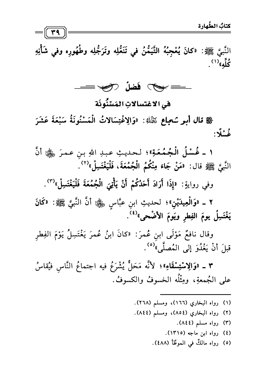 في الاغتسالاتِ المَسْنُونَة