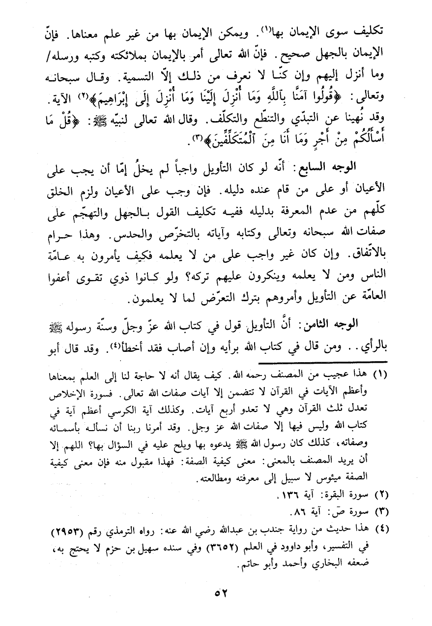 وَإِن كَانَ غير وَاجِب على من لَا يُعلمهُ فَكيف يأمرون بِهِ عَامَّة النَّاس وَمن لَا يُعلمهُ وَيُنْكِرُونَ عَلَيْهِم تَركه وَلَو كَانُوا ذَوي تقوى أعفوا الْعَامَّة عَن التَّأْوِيل وَأمرُوهُمْ بترك التَّعَرُّض لما لَا يعْملُونَ
