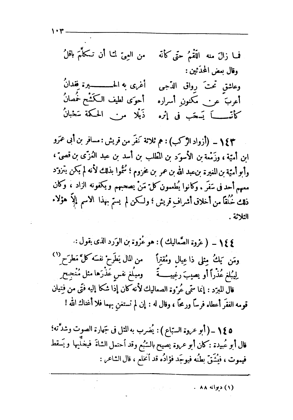 144 - (عُرْوَة الصعاليك) هُوَ عُرْوَة بن الْورْد الذى يَقُول