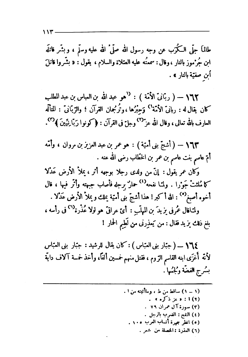 16 - (ربانى الْأمة) هُوَ عبد الله بن الْعَبَّاس بن عبد الْمطلب كَانَ يُقَال لَهُ ربانى الْأمة وحبرها وترجمان الْقُرْآن والربانى المتأله الْعَارِف بِاللَّه تَعَالَى وَقَالَ الله عز وَجل فِي الْقُرْآن {كونُوا ربانيين}