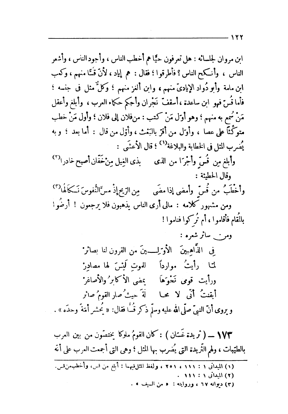 173 - (ثريدة غَسَّان) كَانَ الْقَوْم ملوكا يختصون من بَين الْعَرَب بالطيبات وَلَهُم الثريدة الَّتِى يضْرب بهَا الْمثل وهى الَّتِى أَجمعت الْعَرَب على أَنه