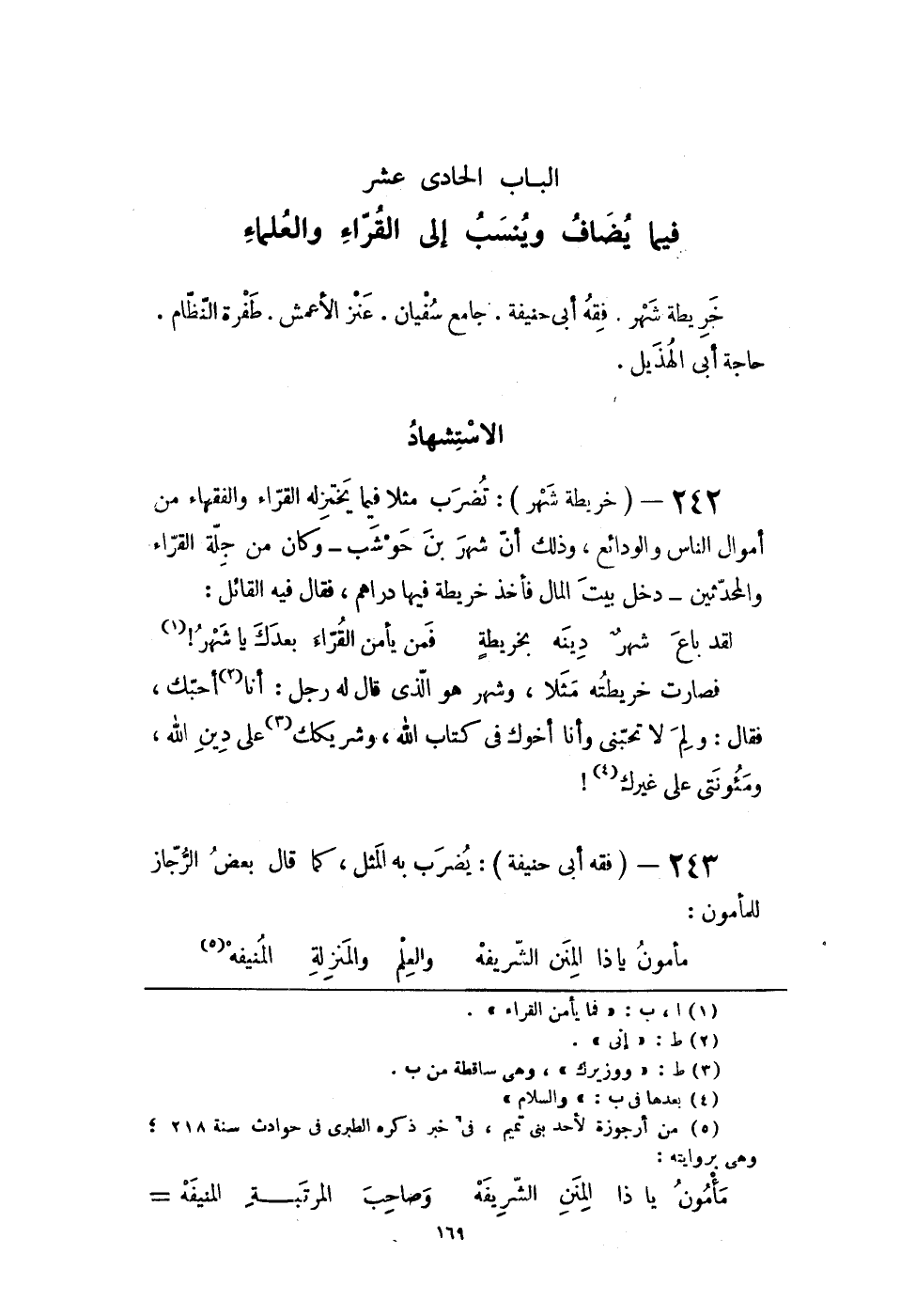 243 - (فقه أَبى حنيفَة) يضْرب بِهِ الْمثل كَمَا قَالَ بعض الرجاز لِلْمَأْمُونِ