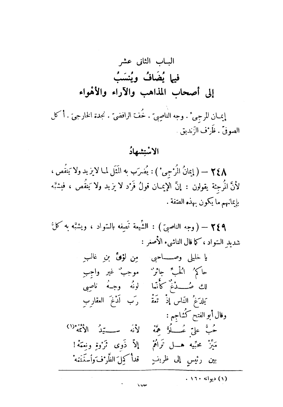 الْبَاب الثانى عشر فِيمَا يُضَاف وينسب إِلَى أَصْحَاب الْمذَاهب والآراء والأهواء