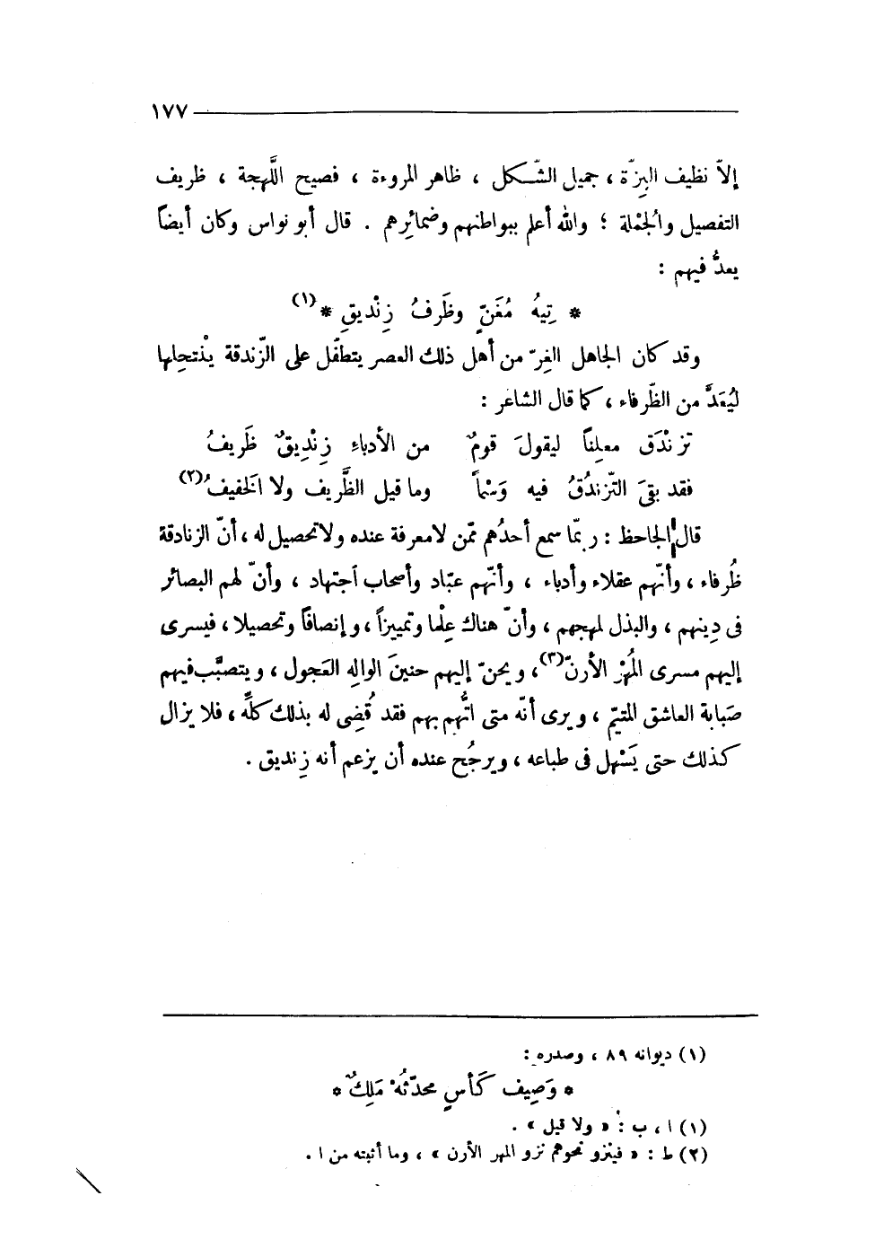 وَقد كَانَ الْجَاهِل الغر من أهل ذَلِك الْعَصْر يتطفل على الزندقة ينتحلها ليعد من الظرفاء كَمَا قَالَ الشَّاعِر