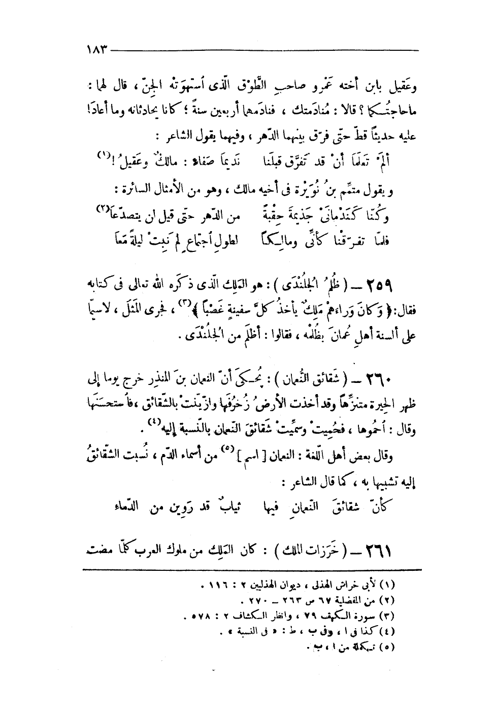 259 - (ظلم الجلندى) هُوَ الْملك الذى ذكره الله تَعَالَى فى كِتَابه فَقَالَ {وَكَانَ وَرَاءَهُمْ ملك يَأْخُذ كل سفينة غصبا} فَجرى الْمثل لاسيما على أَلْسِنَة أهل عمان بظلمه فَقَالُوا أظلم من الجلندى
