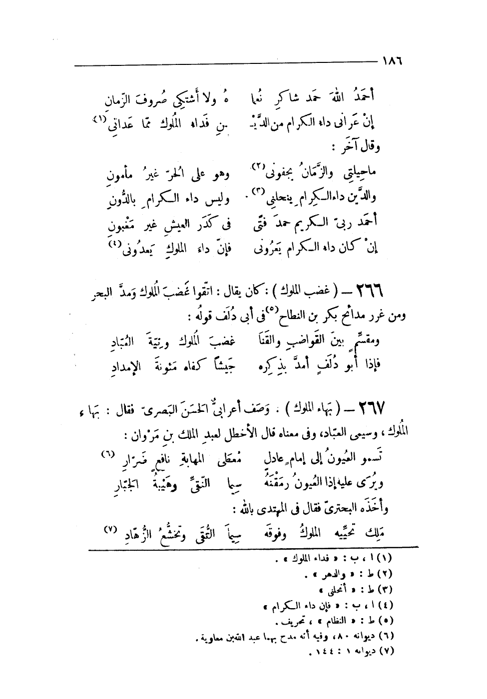 267 - (بهاء الْمُلُوك) وصف أعرابى الْحسن البصرى فَقَالَ بهَا الْمُلُوك وسيمى الْعباد وفى مَعْنَاهُ قَالَ الأخطل لعبد الْملك بن مَرْوَان