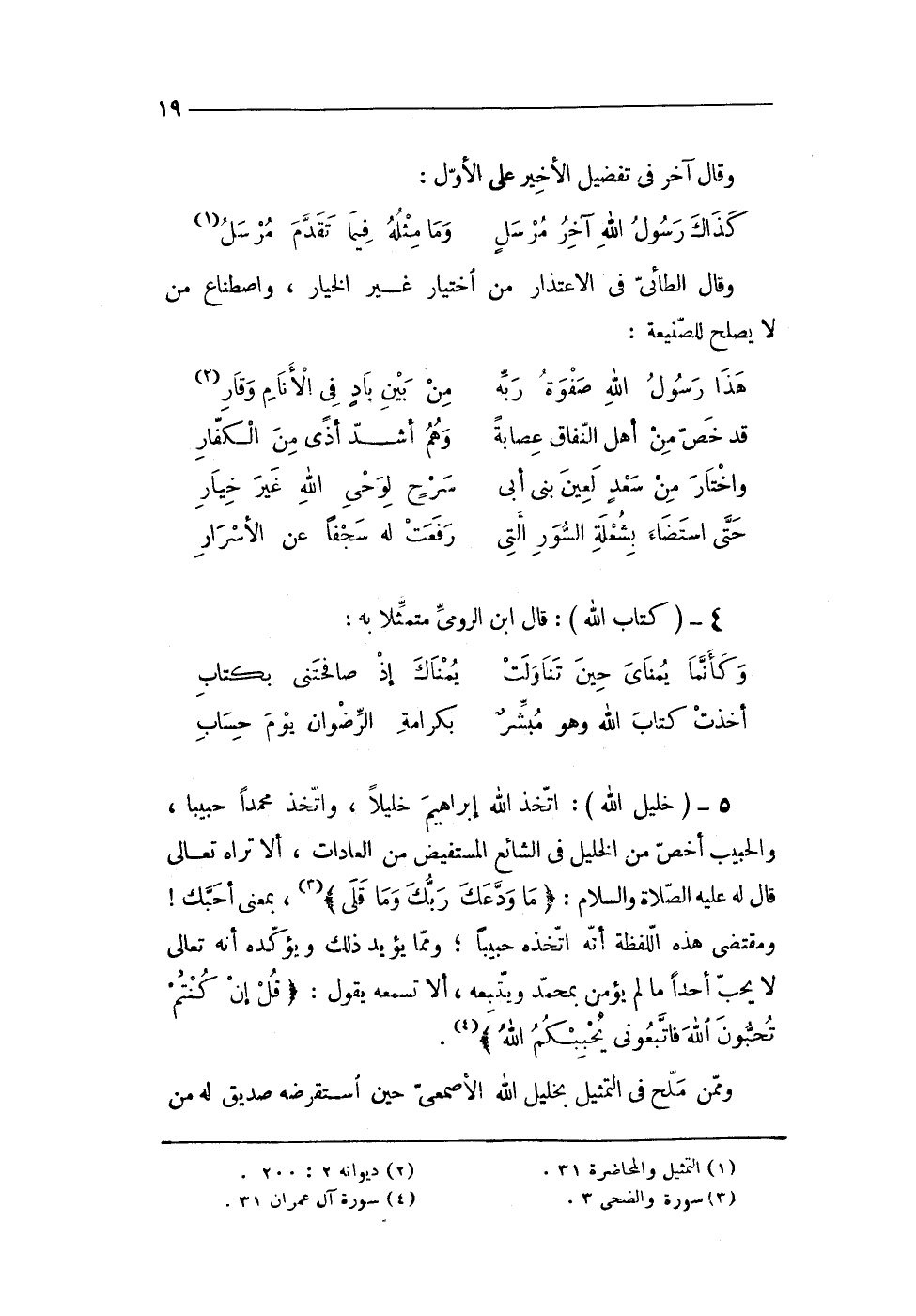 4 - (كتاب الله) قَالَ ابْن الرومى متمثلا بِهِ