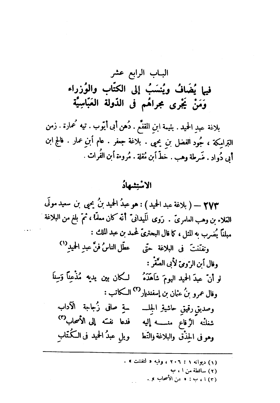 الْبَاب الرَّابِع عشر فِيمَا يُضَاف وينسب إِلَى الْكتاب والوزراء وَمن يجرى مجراهم فى الدولة العباسية