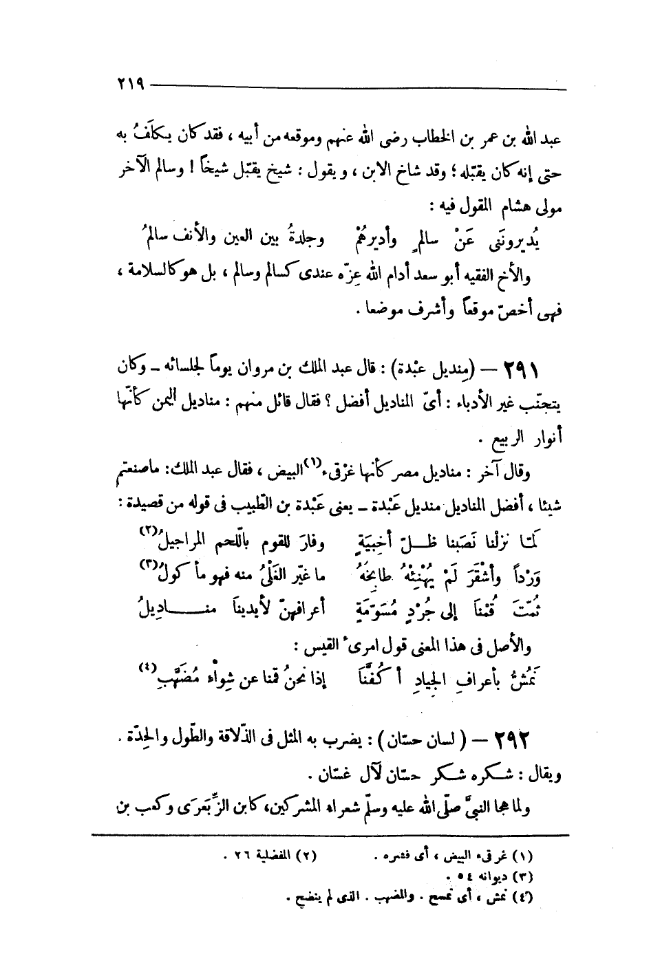 (نمش بأعراف الْجِيَاد أكفنا ... إِذا نَحن قمنا عَن شواء مضهب) 29 (لِسَان حسان) يضْرب بِهِ الْمثل فى الذلاقة والطول والحدة وَيُقَال شكره شكر حسان لآل غَسَّان