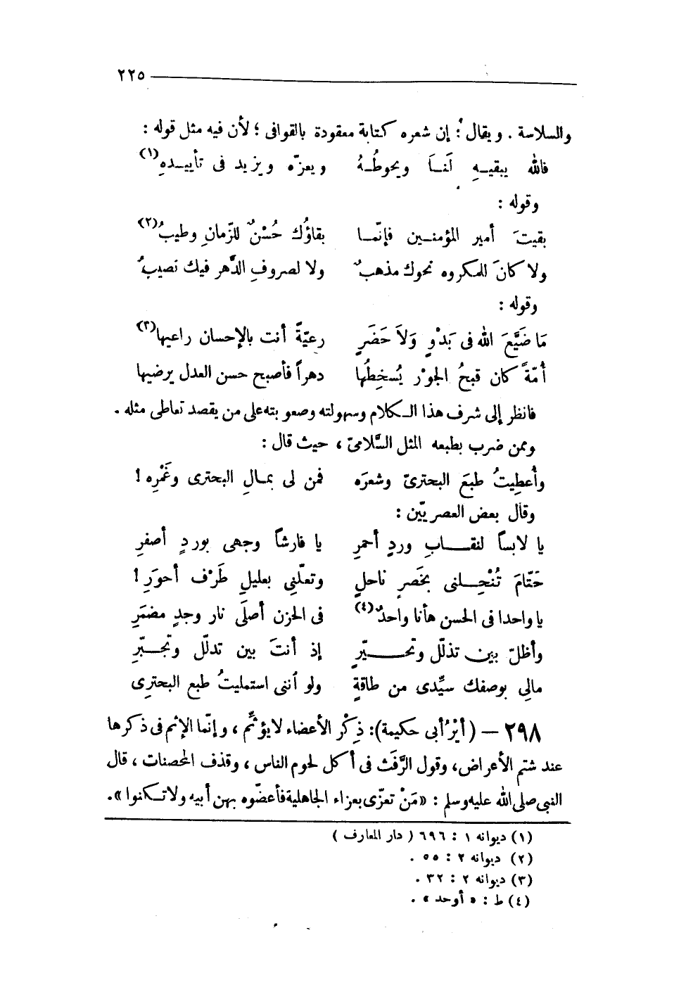 (مالى بوصفك سيدى من طَاقَة ... وَلَو اننى استمليت طبع البحترى)