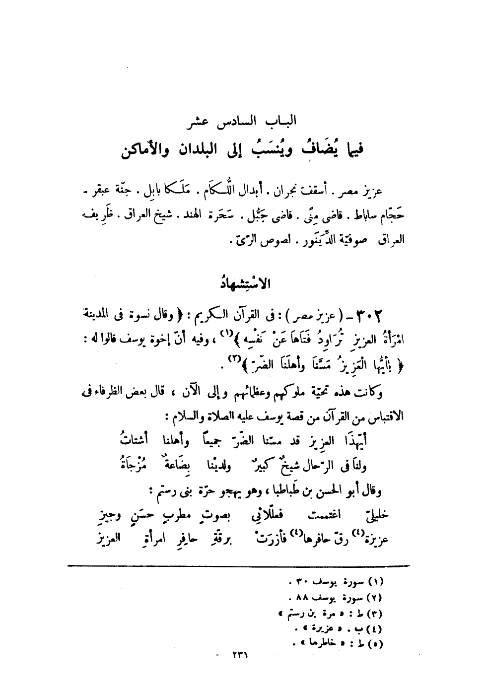 الْبَاب السَّادِس عشر فِيمَا يُضَاف وينسب إِلَى الْبلدَانِ والأماكن