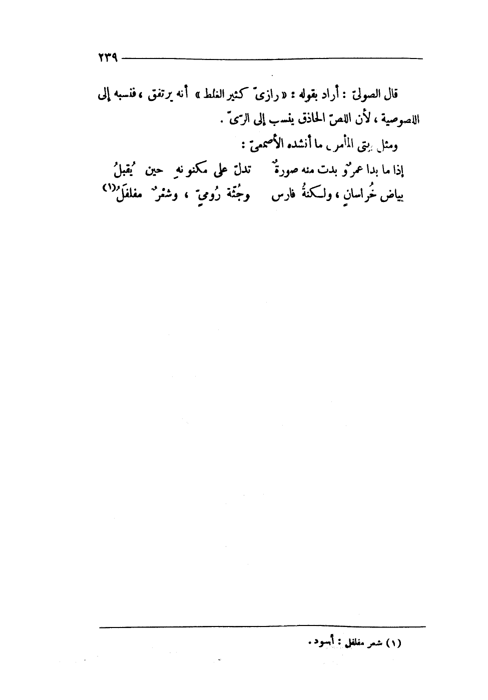 (بَيَاض خُرَاسَان وَلكنه فَارس ... وجثة رومى وَشعر مفلفل)
