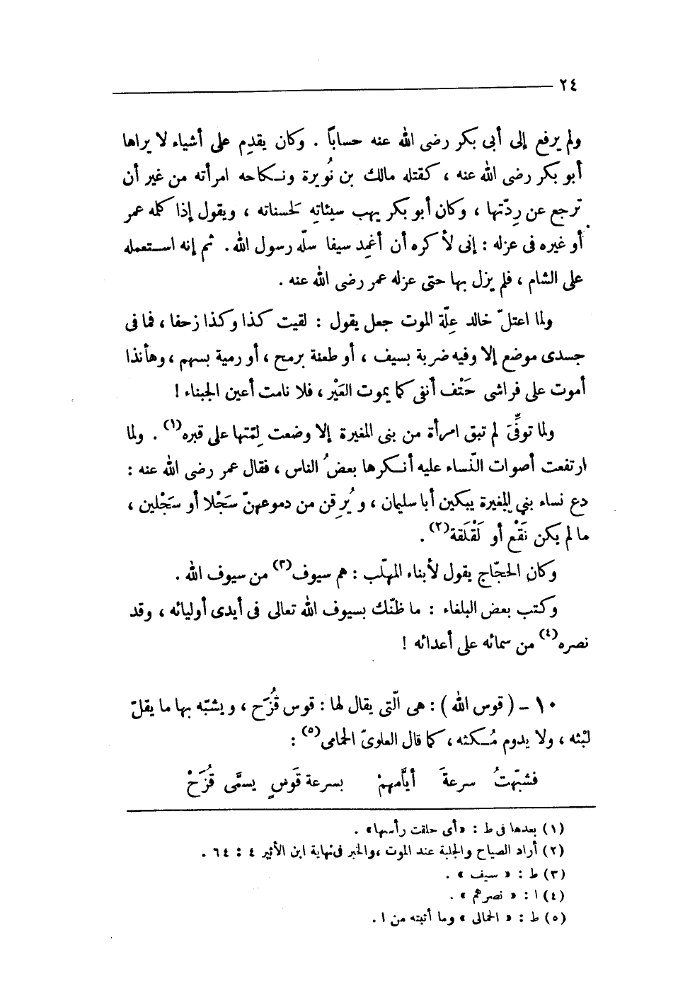 وَكتب بعض البلغاء مَا ظَنك بسيوف الله تَعَالَى فِي أيدى أوليائه وَقد نَصره من سمائه على أعدائه