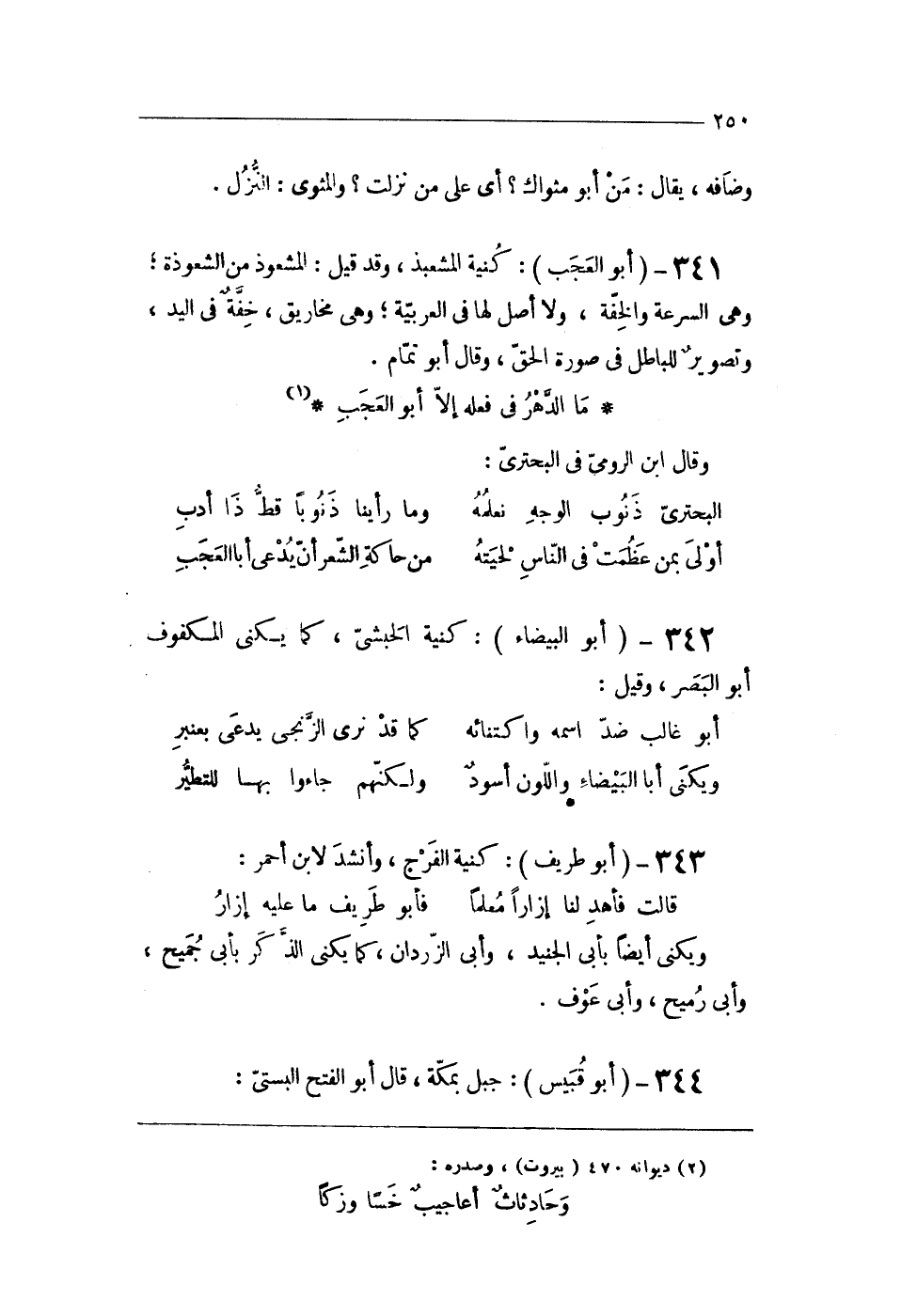 (ويكنى أَبَا الْبَيْضَاء واللون أسود ... وَلَكنهُمْ جَاءُوا بهَا للتطير)
