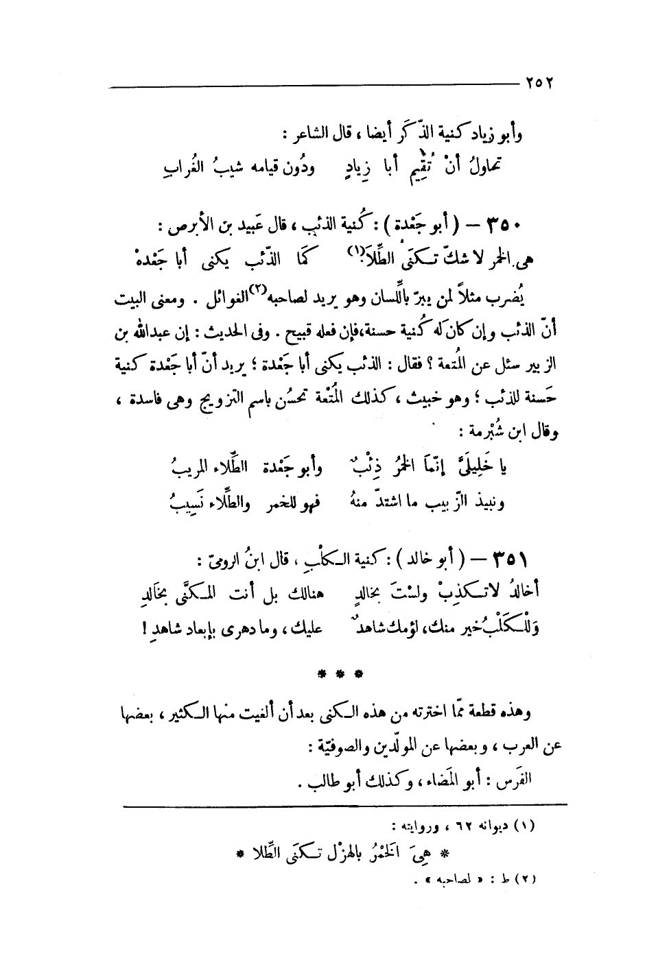 وَهَذِه قِطْعَة مِمَّا اخترته من هَذِه الكنى بعد أَن الغيت مِنْهَا الْكثير بَعْضهَا عَن الْعَرَب وَبَعضهَا عَن المولدين والصوفية