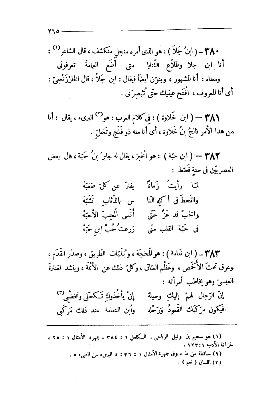 380 - (ابْن جلا) هُوَ الذى أمره منجل منكشف قَالَ الشَّاعِر
