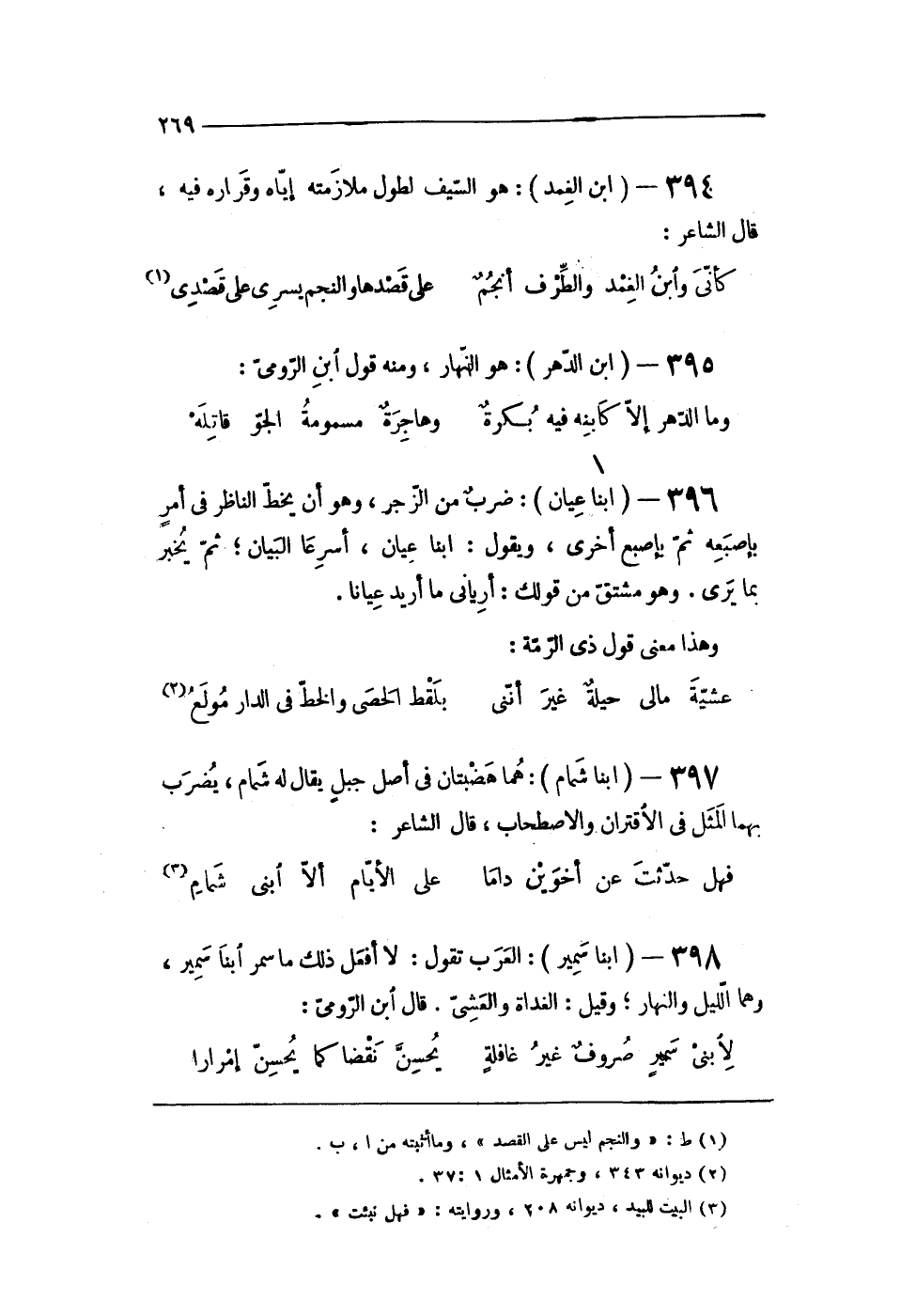 395 - (ابْن الدَّهْر) هُوَ النَّهَار وَمِنْه قَول ابْن الرومى