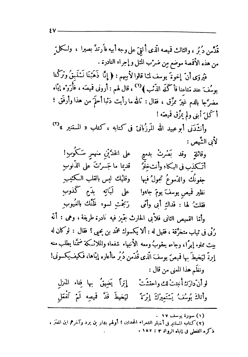 (نَظِير قَمِيص يُوسُف يَوْم جَاءُوا ... على لباته بِدَم كذوب)