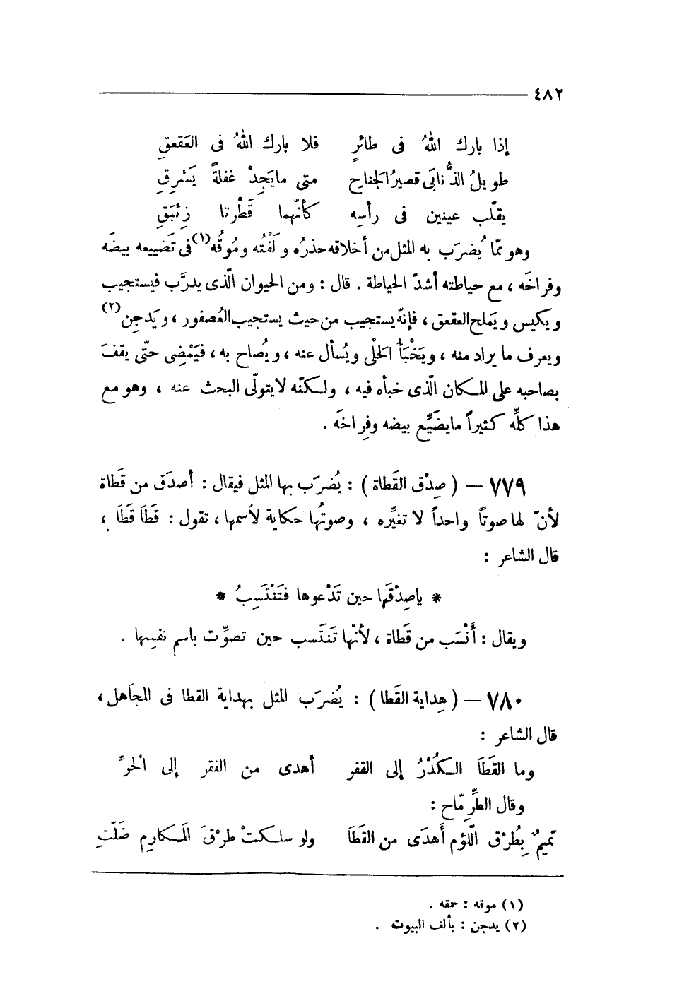780 - (هِدَايَة القطا) يضْرب الْمثل بهداية القطا فى الْجَاهِل قَالَ الشَّاعِر