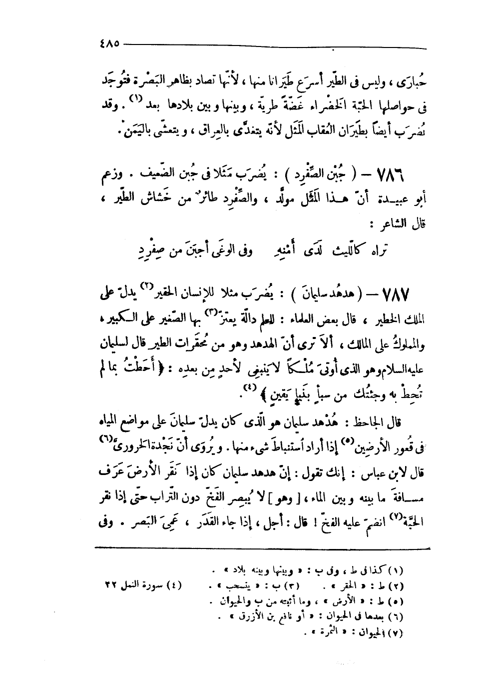 787 - (هدهد سُلَيْمَان) يضْرب مثلا للْإنْسَان الحقير يدل على الْملك الخطير قَالَ بعض الْعلمَاء للْعلم دَالَّة يعتز بهَا الصَّغِير على الْكَبِير والمملوك على الْمَالِك أَلا ترى أَن الهدهد وَهُوَ من محقرات الطير قَالَ لِسُلَيْمَان عَلَيْهِ السَّلَام وَهُوَ الذى أُوتى ملكا لَا ينبغى لأحد من بعده {أحطت بِمَا لم تحط بِهِ وجئتك من سبإ بنبإ يَقِين}