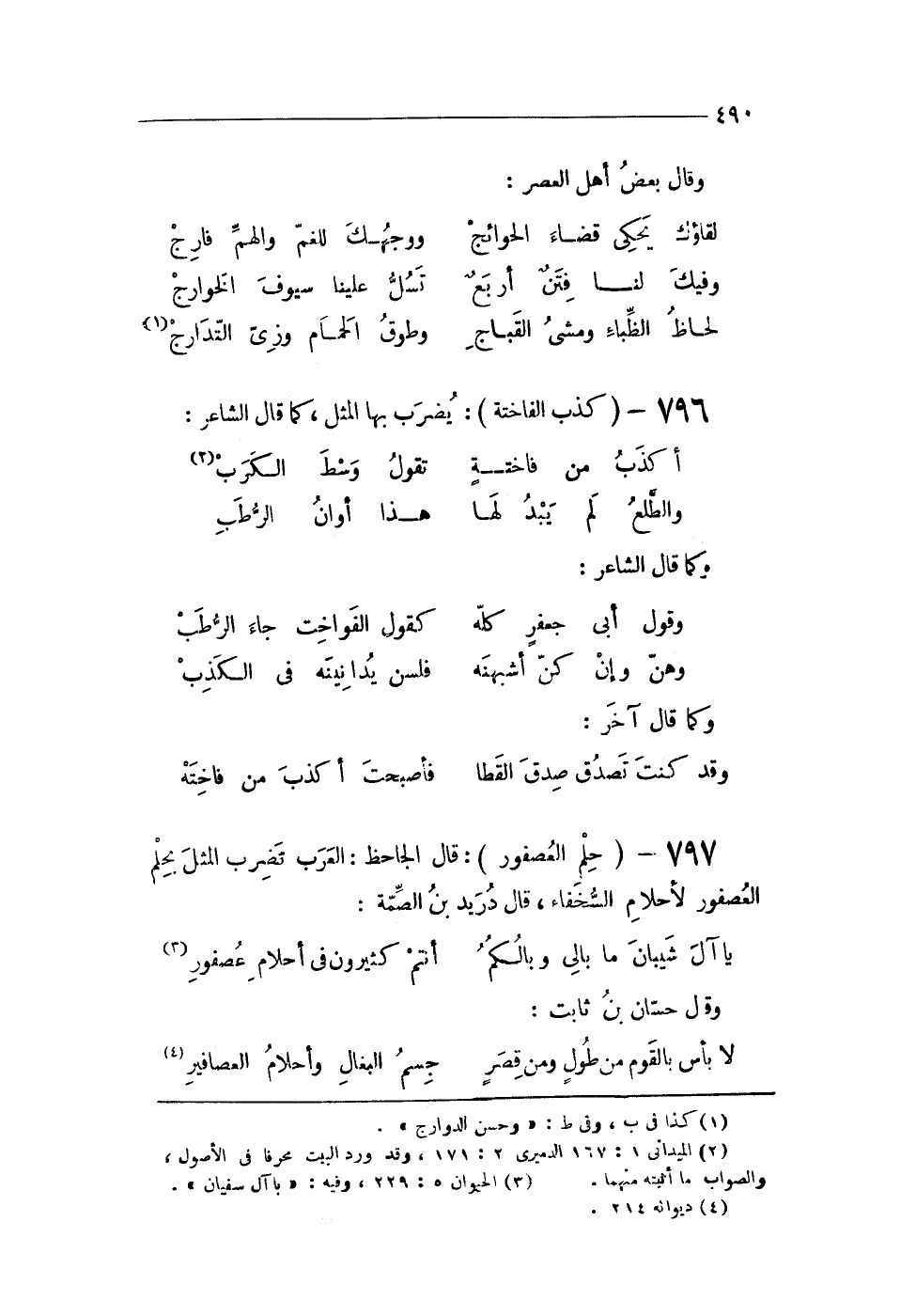 796 - (كذب الفاختة) يضْرب بهَا الْمثل كَمَا قَالَ الشَّاعِر