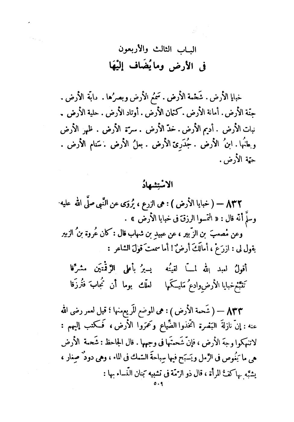 الْبَاب الثَّالِث وَالْأَرْبَعُونَ فِي الأَرْض وَمَا يُضَاف إِلَيْهَا