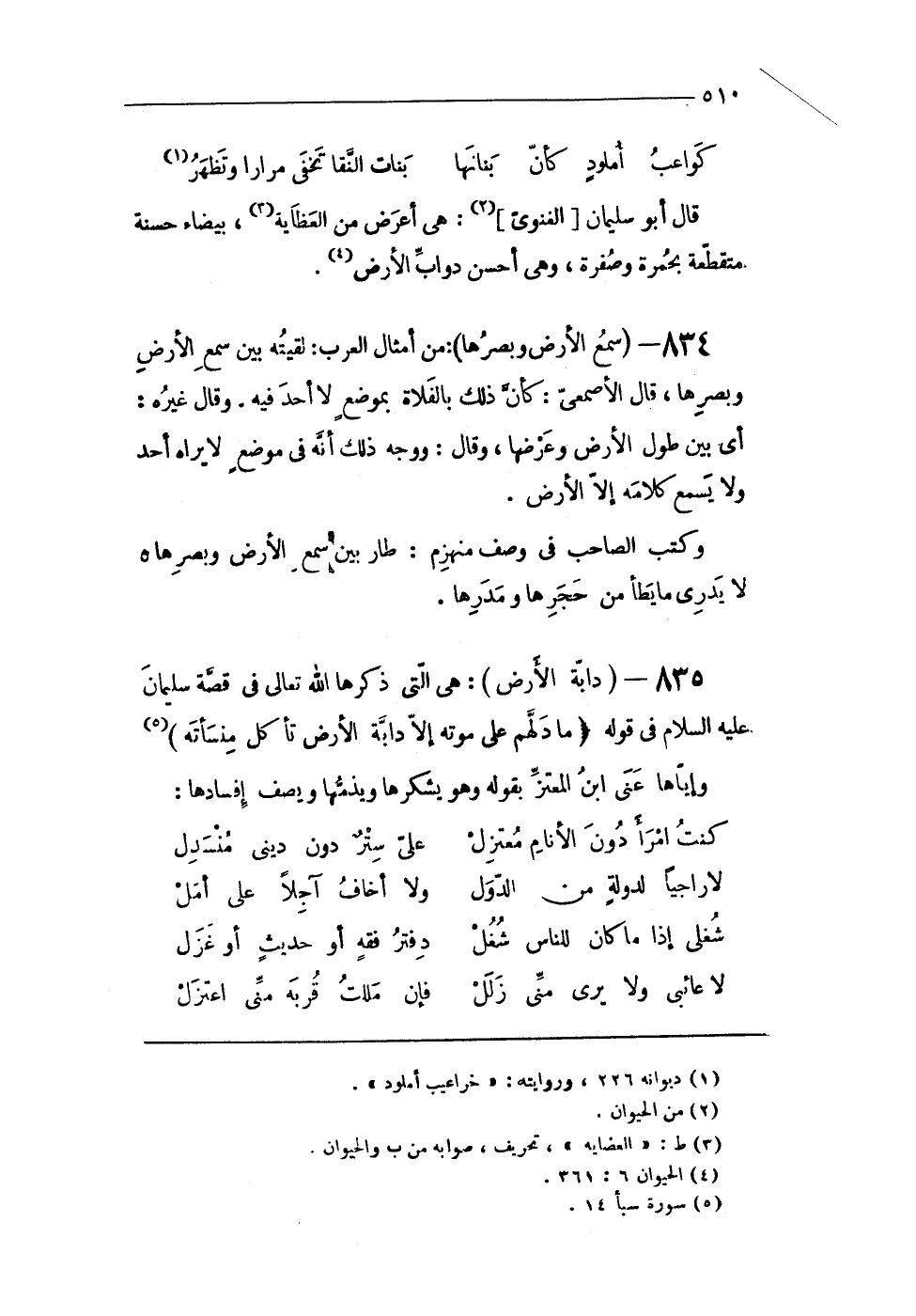 835 - (دَابَّة الأَرْض) هى الَّتِى ذكرهَا الله تَعَالَى فى قصَّة سُلَيْمَان عَلَيْهِ السَّلَام فى قَوْله {مَا دلهم على مَوته إِلَّا دَابَّة الأَرْض تَأْكُل منسأته}