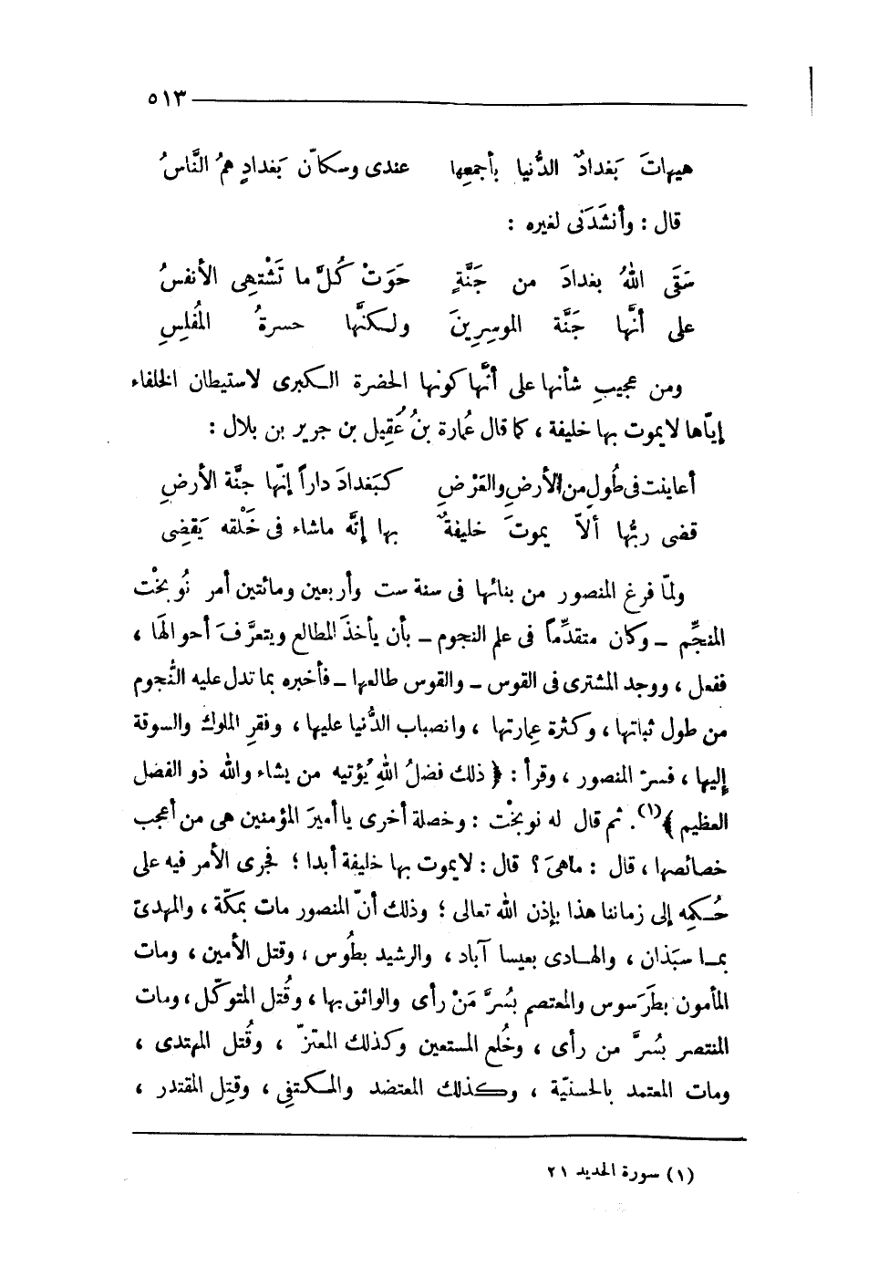 (أعاينت فى طول من الأَرْض وَالْعرض ... كبغداد دَارا إِنَّهَا جنَّة الأَرْض)