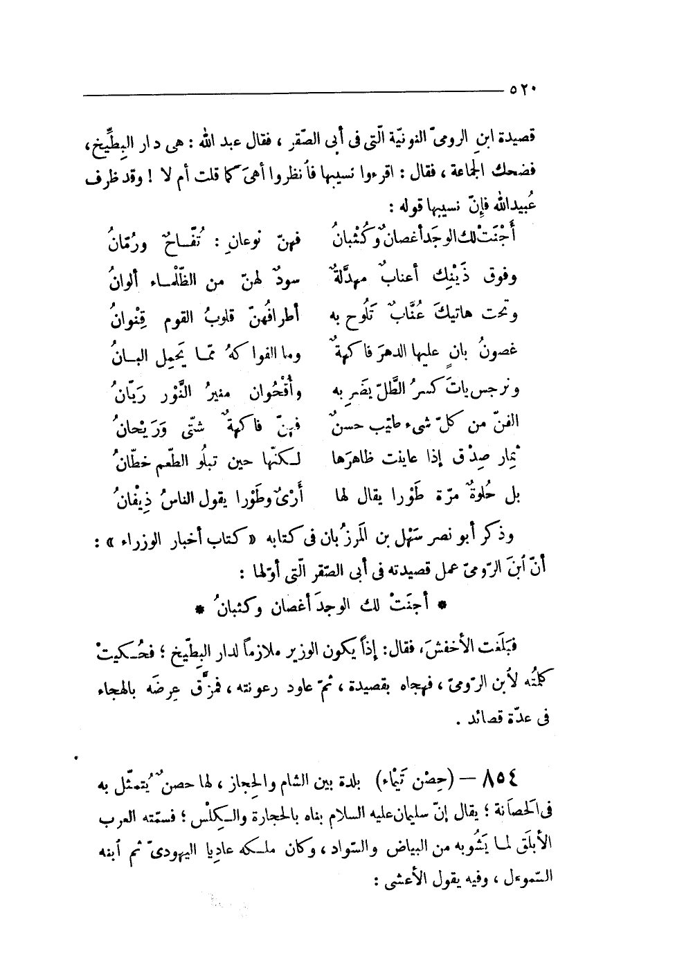 854 - (حصن تيماء) بَلْدَة بَين الشَّام والحجاز لَهَا حصن يتَمَثَّل بِهِ فى الحصانة يُقَال إِن سُلَيْمَان عَلَيْهِ السَّلَام بناه بِالْحِجَارَةِ والكلس فَسَمتْهُ الْعَرَب الأبلق لما يشوبه من الْبيَاض والسواد وَكَانَ ملكه عاديا اليهودى ثمَّ ابْنه السموءل وَفِيه يَقُول الْأَعْمَش
