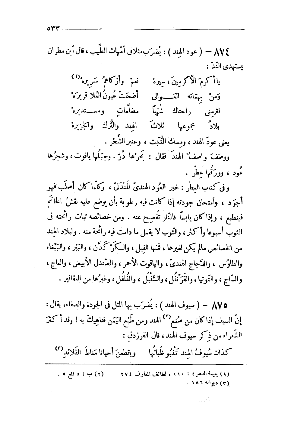 874 - (عود الْهِنْد) يضْرب مثلا فى أُمَّهَات الطّيب قَالَ ابْن مطران يستهدى الند