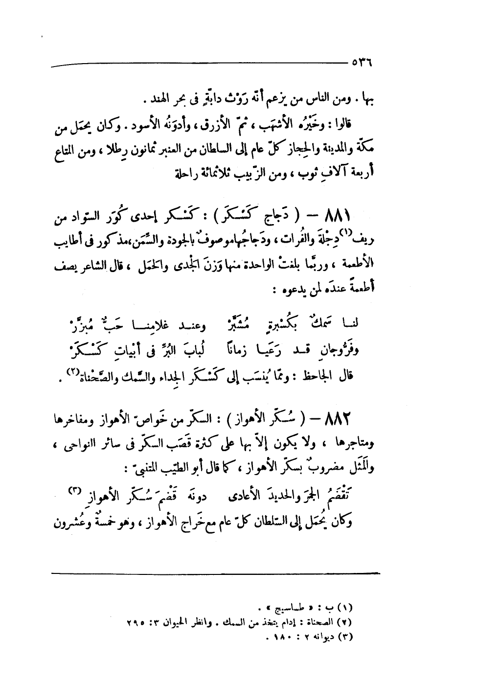 88 - (سكر الأهواز) السكر من خَواص الأهواز ومفاخرها ومتاجرها وَلَا يكون إِلَّا بهَا على كَثْرَة قصب السكر فى سَائِر النواحى والمثل مَضْرُوب بسكر الأهواز كَمَا قَالَ أَبُو الطّيب المتنبى