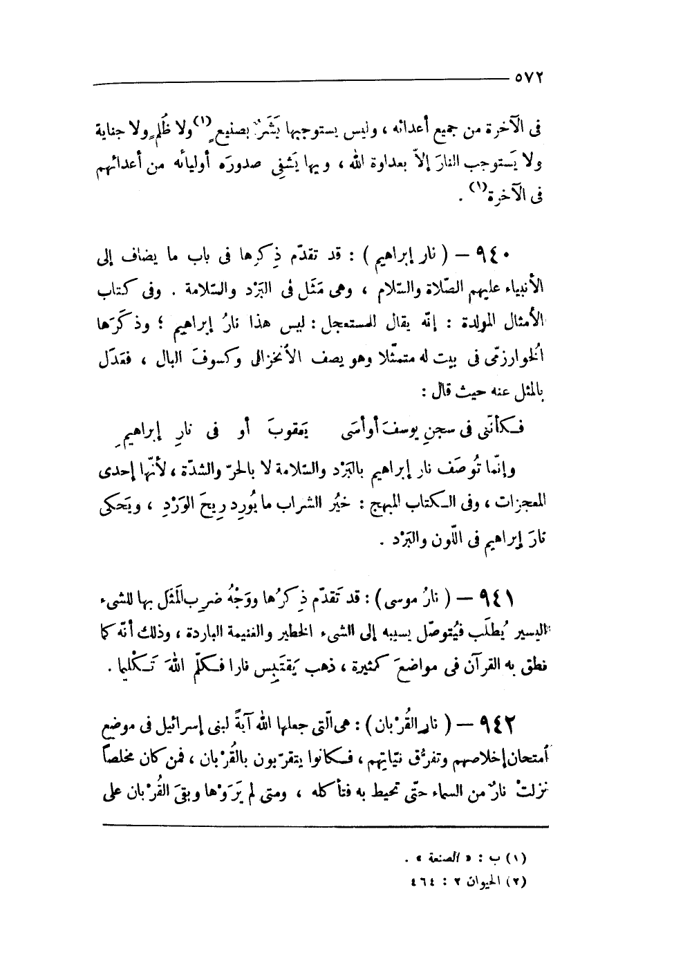 940 - (نَار إِبْرَاهِيم) قد تقدم ذكرهَا فى بَاب مَا يُضَاف إِلَى الْأَنْبِيَاء عَلَيْهِم الصَّلَاة وَالسَّلَام وهى مثل فى الْبرد والسلامة وفى كتاب الْأَمْثَال المولدة إِنَّه يُقَال للمستعجل لَيْسَ هَذَا نَار إِبْرَاهِيم وَذكرهَا الخوارزمى فى بَيت لَهُ متمثلا وَهُوَ يصف الانخزال وكسوف البال فَعدل بِالْمثلِ عَنهُ حَيْثُ قَالَ
