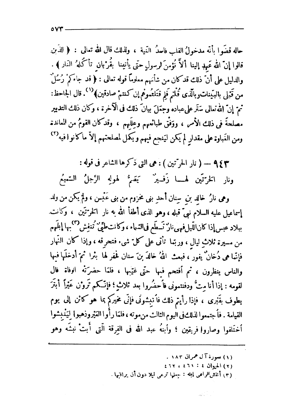 943 - (نَار الحرتين) هى الَّتِى ذكرهَا الشَّاعِر فى قَوْله